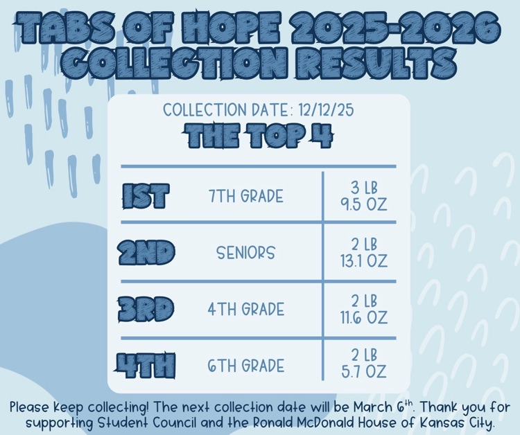 7th grade celebrated with drinks and snacks! Keep collecting your tabs!