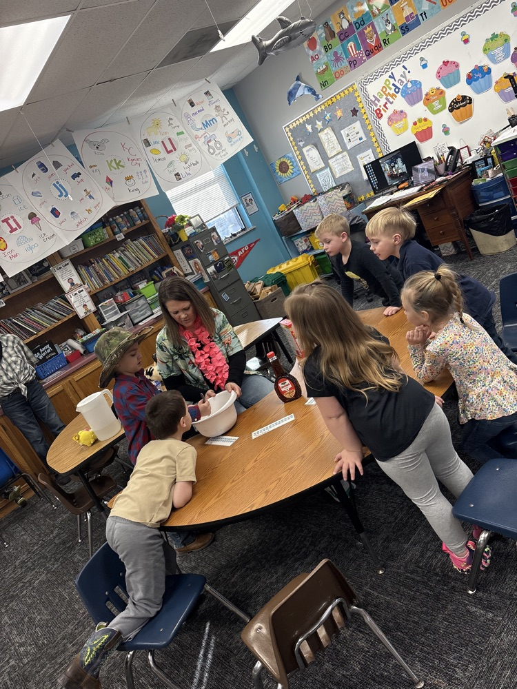 P is for pancakes! Preschool read If You Give a Pig a Pancake then made pancakes for a special snack.