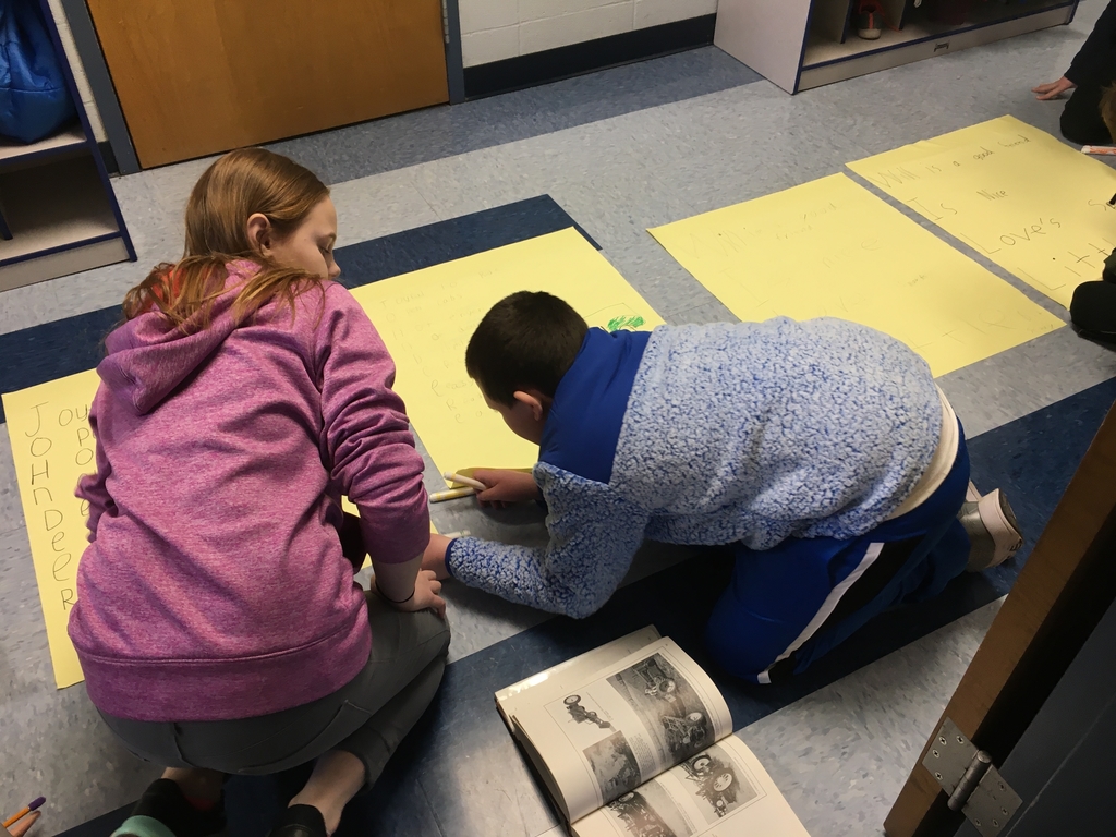 4th graders played the part of early settlement colonists and had to decide what they needed to build to survive. What do we catch food with, collect water, shelter???
