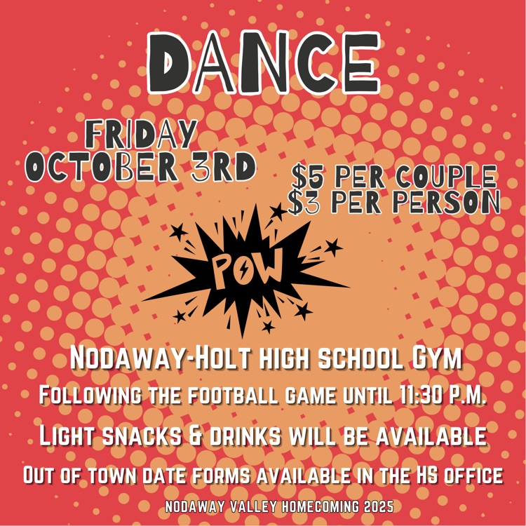 The West Nodaway BOE will hold its regularly scheduled monthly meeting @ 6:00 p.m. Oct 8th, 2025 in the school library. The agenda is posted under menu/docs/BOE on the school website.