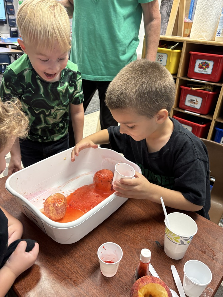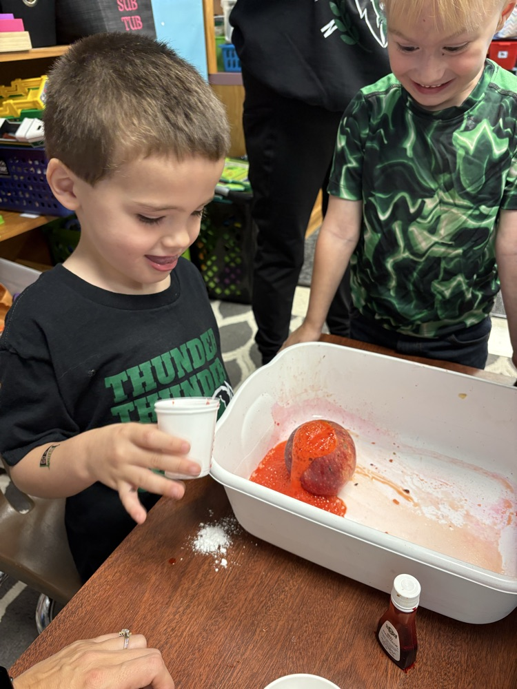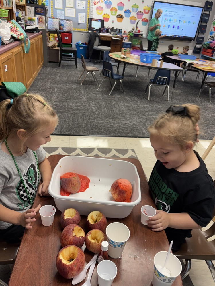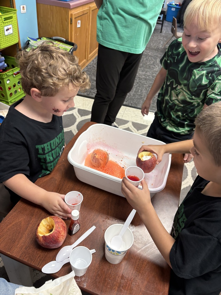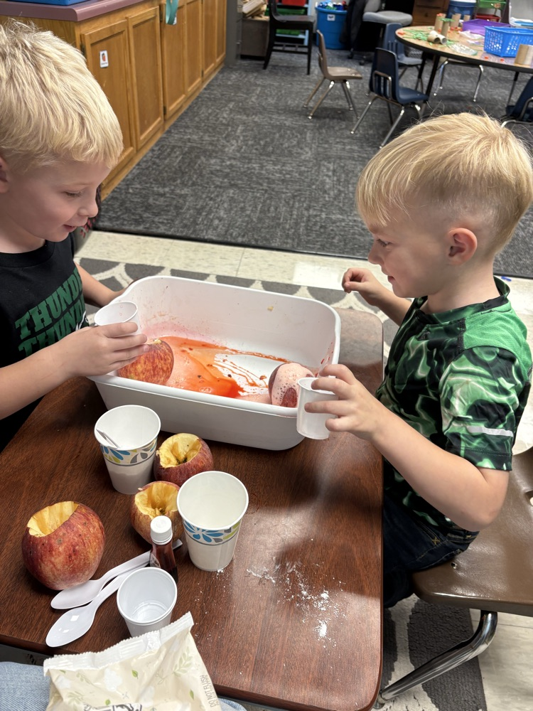 Preschool wrapped up their apple unit today by making apple volcanoes.